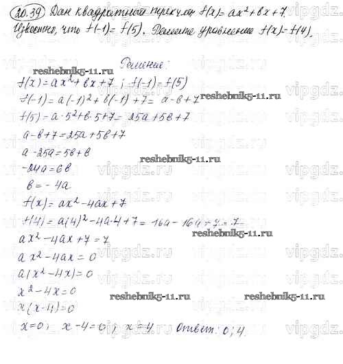 Готовая домашняя работа с ответами по Алгебре за 8 класс Мордкович Задачник УМК Углубленный уровень Часть 1, 2 Мнемозина 2016 ФГОС - Параграф 20 39