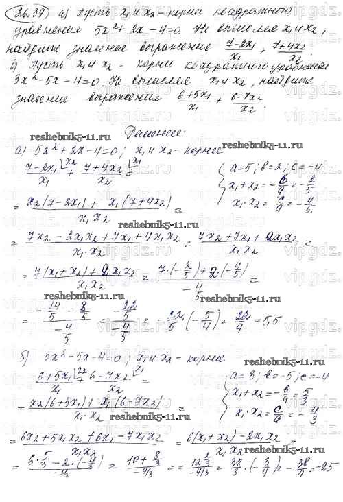 Готовая домашняя работа с ответами по Алгебре за 8 класс Мордкович Задачник УМК Углубленный уровень Часть 1, 2 Мнемозина 2016 ФГОС - Параграф 26 39