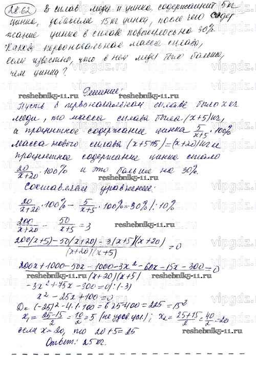 Готовая домашняя работа с ответами по Алгебре за 8 класс Мордкович Задачник УМК Углубленный уровень Часть 1, 2 Мнемозина 2016 ФГОС - Параграф 28 62