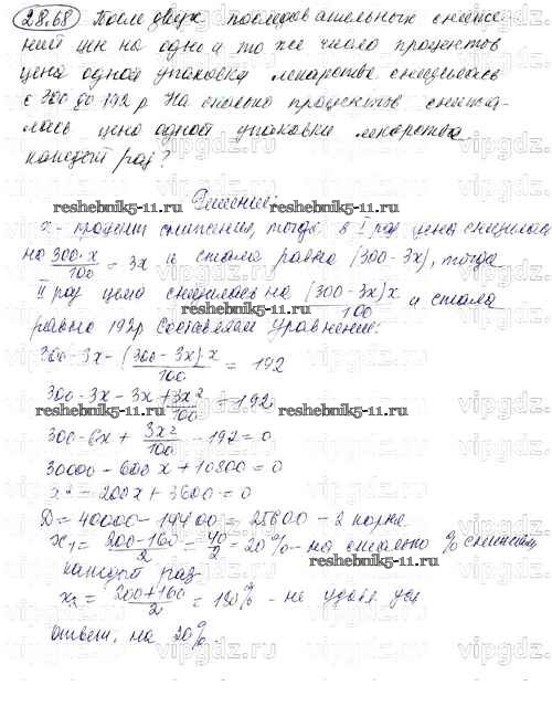 Готовая домашняя работа с ответами по Алгебре за 8 класс Мордкович Задачник УМК Углубленный уровень Часть 1, 2 Мнемозина 2016 ФГОС - Параграф 28 68
