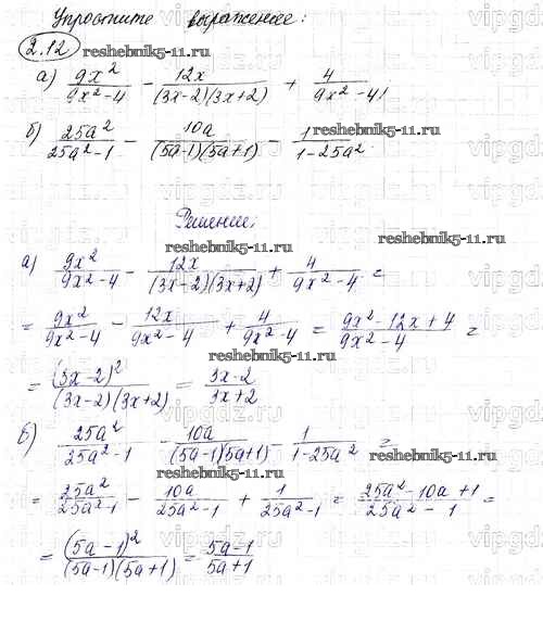 Готовая домашняя работа с ответами по Алгебре за 8 класс Мордкович Задачник УМК Углубленный уровень Часть 1, 2 Мнемозина 2016 ФГОС - Параграф 2 12