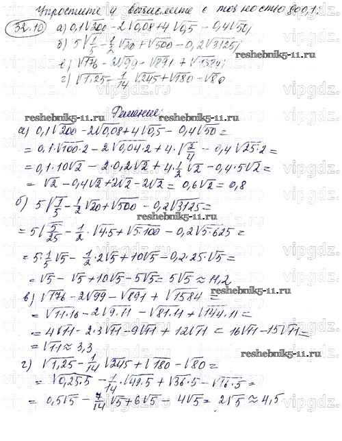 Готовая домашняя работа с ответами по Алгебре за 8 класс Мордкович Задачник УМК Углубленный уровень Часть 1, 2 Мнемозина 2016 ФГОС - Параграф 32 10