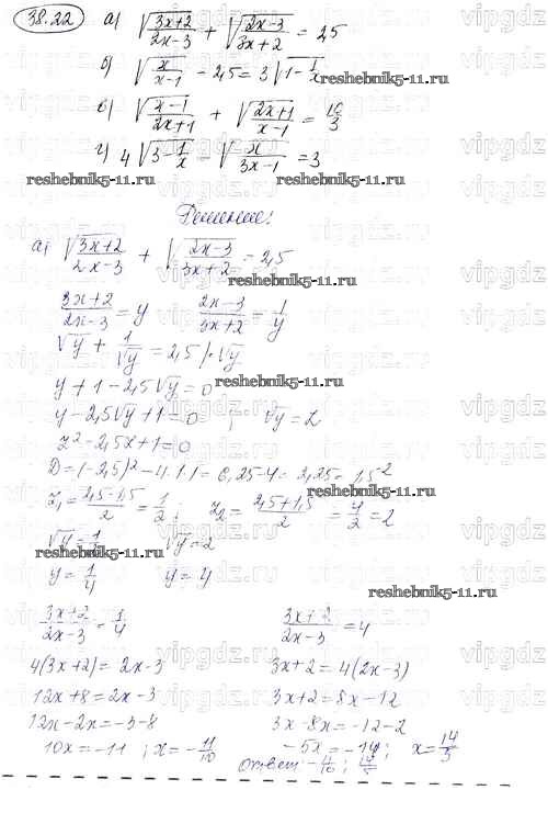 Готовая домашняя работа с ответами по Алгебре за 8 класс Мордкович Задачник УМК Углубленный уровень Часть 1, 2 Мнемозина 2016 ФГОС - Параграф 38 22