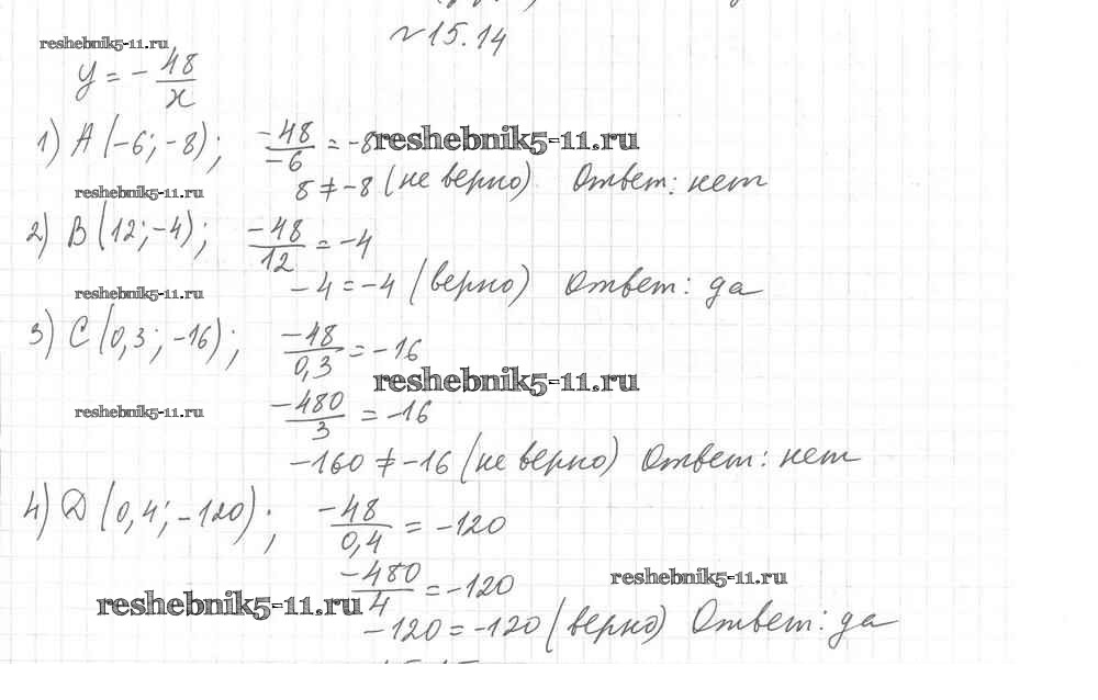 Готовая домашняя работа с ответами по Алгебре за 8 класс Мерзляк, Поляков Учебник Алгоритм успеха Углубленный уровень Вентана-граф 2020 ФГОС - §15. Функция y=k/x и ее график 14