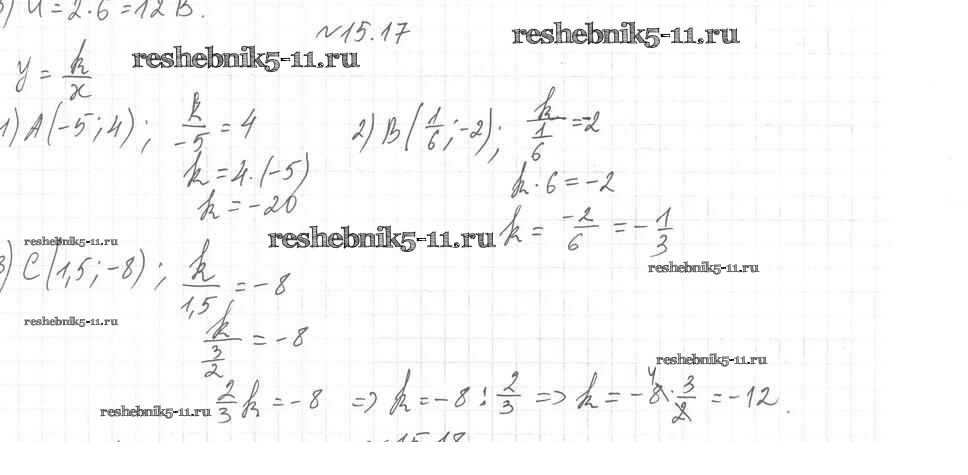 Готовая домашняя работа с ответами по Алгебре за 8 класс Мерзляк, Поляков Учебник Алгоритм успеха Углубленный уровень Вентана-граф 2020 ФГОС - §15. Функция y=k/x и ее график 17