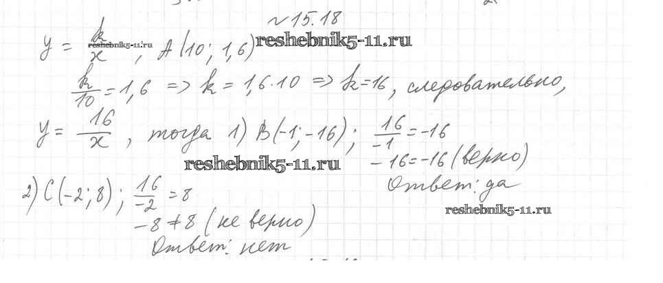 Готовая домашняя работа с ответами по Алгебре за 8 класс Мерзляк, Поляков Учебник Алгоритм успеха Углубленный уровень Вентана-граф 2020 ФГОС - §15. Функция y=k/x и ее график 18