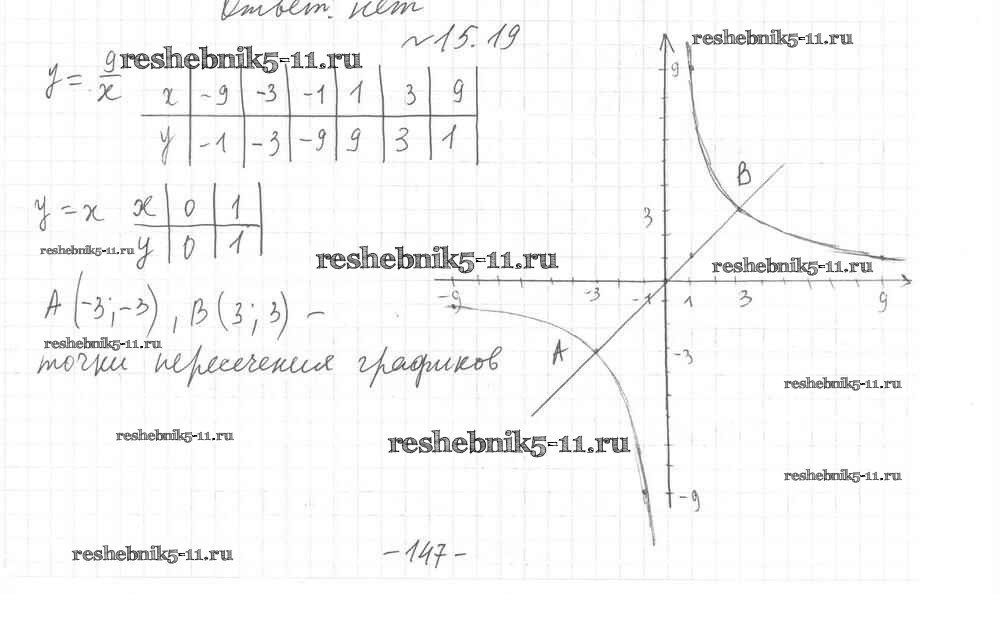 Готовая домашняя работа с ответами по Алгебре за 8 класс Мерзляк, Поляков Учебник Алгоритм успеха Углубленный уровень Вентана-граф 2020 ФГОС - §15. Функция y=k/x и ее график 19
