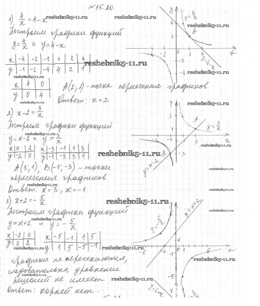 Готовая домашняя работа с ответами по Алгебре за 8 класс Мерзляк, Поляков Учебник Алгоритм успеха Углубленный уровень Вентана-граф 2020 ФГОС - §15. Функция y=k/x и ее график 20