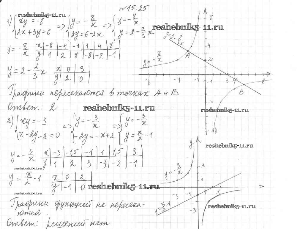 Готовая домашняя работа с ответами по Алгебре за 8 класс Мерзляк, Поляков Учебник Алгоритм успеха Углубленный уровень Вентана-граф 2020 ФГОС - §15. Функция y=k/x и ее график 25