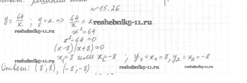 Готовая домашняя работа с ответами по Алгебре за 8 класс Мерзляк, Поляков Учебник Алгоритм успеха Углубленный уровень Вентана-граф 2020 ФГОС - §15. Функция y=k/x и ее график 26