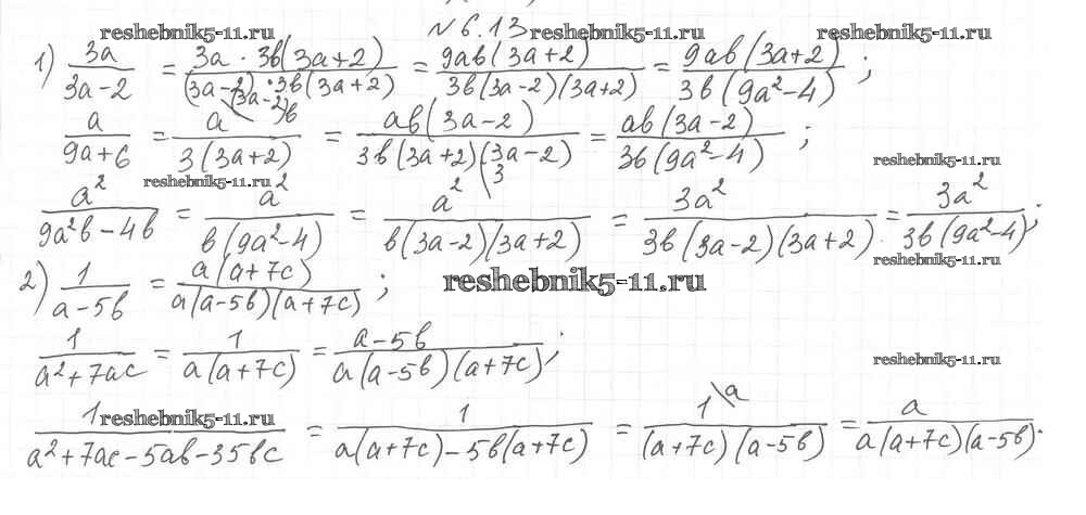 Готовая домашняя работа с ответами по Алгебре за 8 класс Мерзляк, Поляков Учебник Алгоритм успеха Углубленный уровень Вентана-граф 2020 ФГОС - §6. Основное свойство рациональной дроби 13