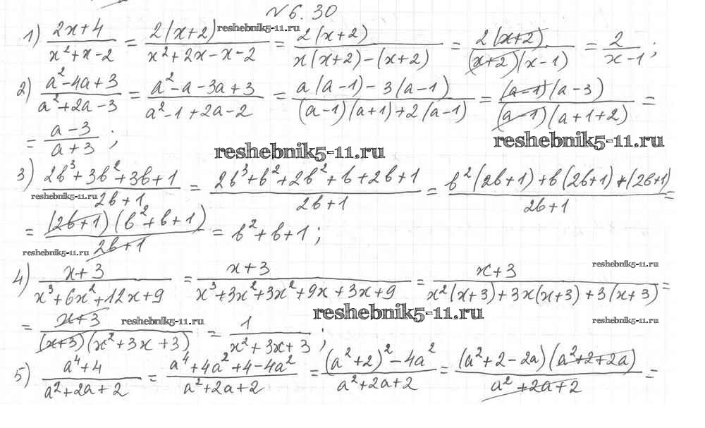 Готовая домашняя работа с ответами по Алгебре за 8 класс Мерзляк, Поляков Учебник Алгоритм успеха Углубленный уровень Вентана-граф 2020 ФГОС - §6. Основное свойство рациональной дроби 30