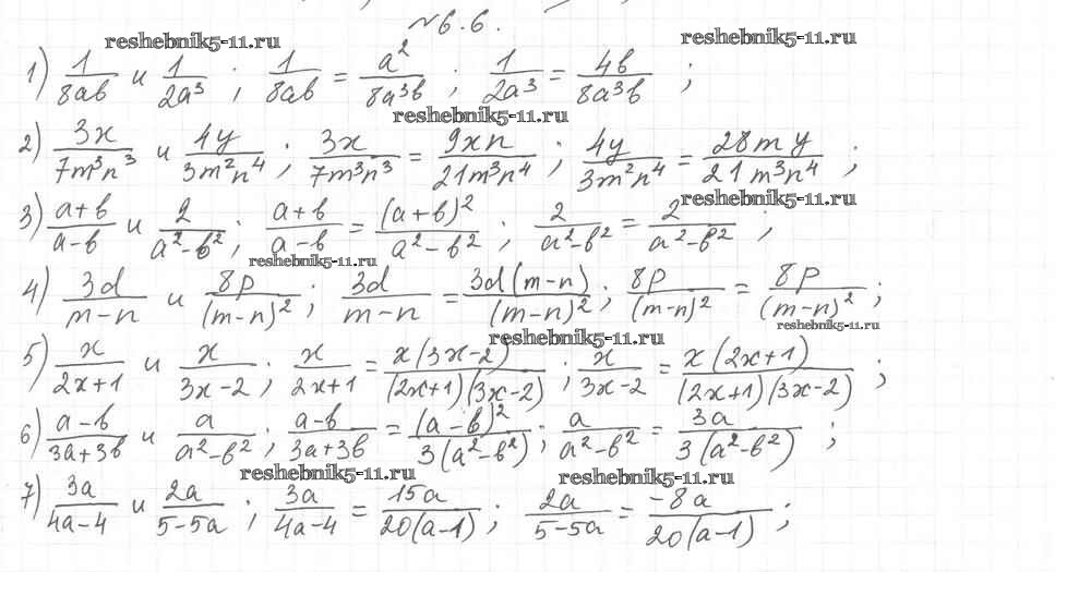 Готовая домашняя работа с ответами по Алгебре за 8 класс Мерзляк, Поляков Учебник Алгоритм успеха Углубленный уровень Вентана-граф 2020 ФГОС - §6. Основное свойство рациональной дроби 6