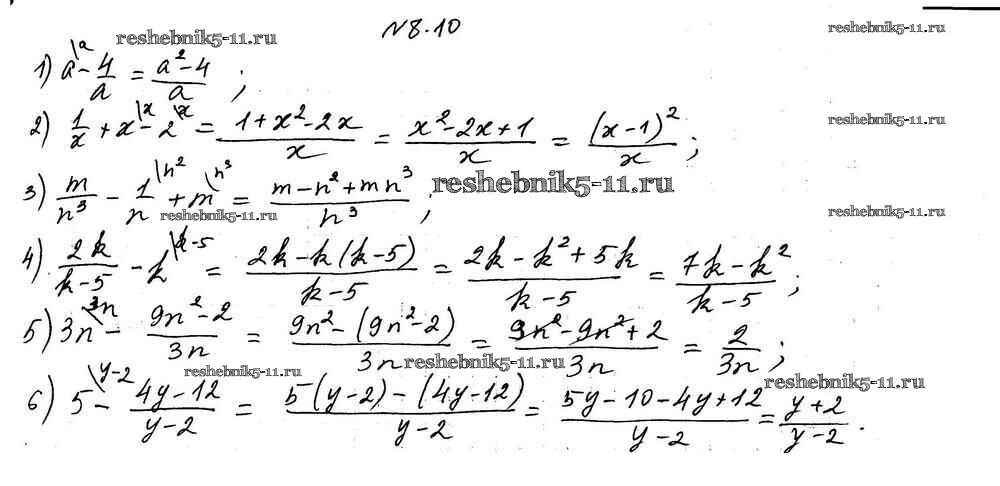 Готовая домашняя работа с ответами по Алгебре за 8 класс Мерзляк, Поляков Учебник Алгоритм успеха Углубленный уровень Вентана-граф 2020 ФГОС - §8. Сложение и вычитание рациональных дробей с разными знаменателями 10