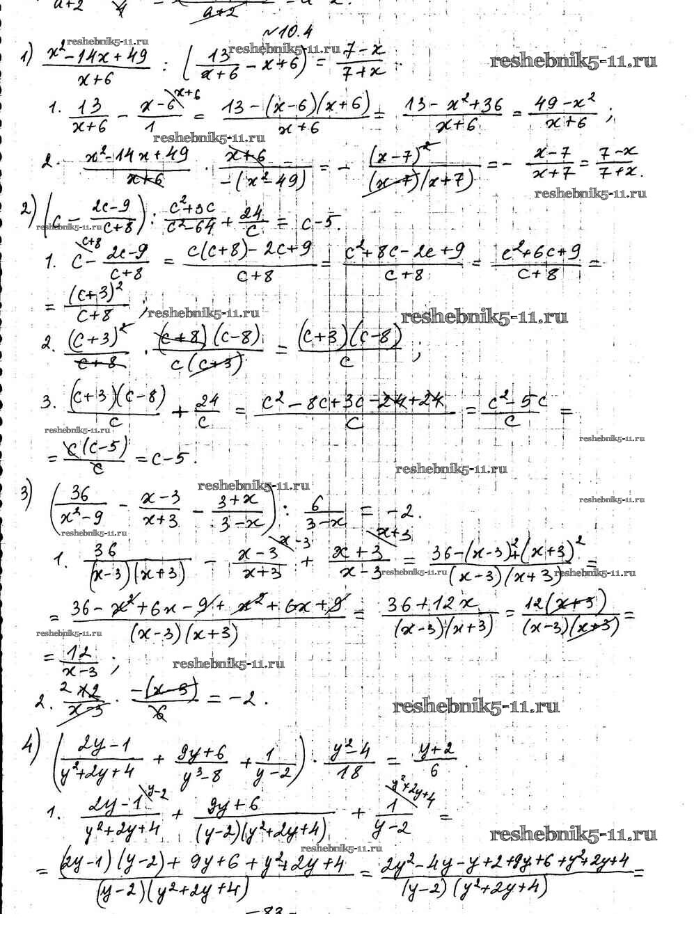 Готовая домашняя работа с ответами по Алгебре за 8 класс Мерзляк, Поляков Учебник Алгоритм успеха Углубленный уровень Вентана-граф 2020 ФГОС - §10. Тождественные преобразования рациональных выражений 4