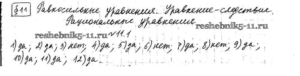 Готовая домашняя работа с ответами по Алгебре за 8 класс Мерзляк, Поляков Учебник Алгоритм успеха Углубленный уровень Вентана-граф 2020 ФГОС - §11. Равносильные уравнения 1
