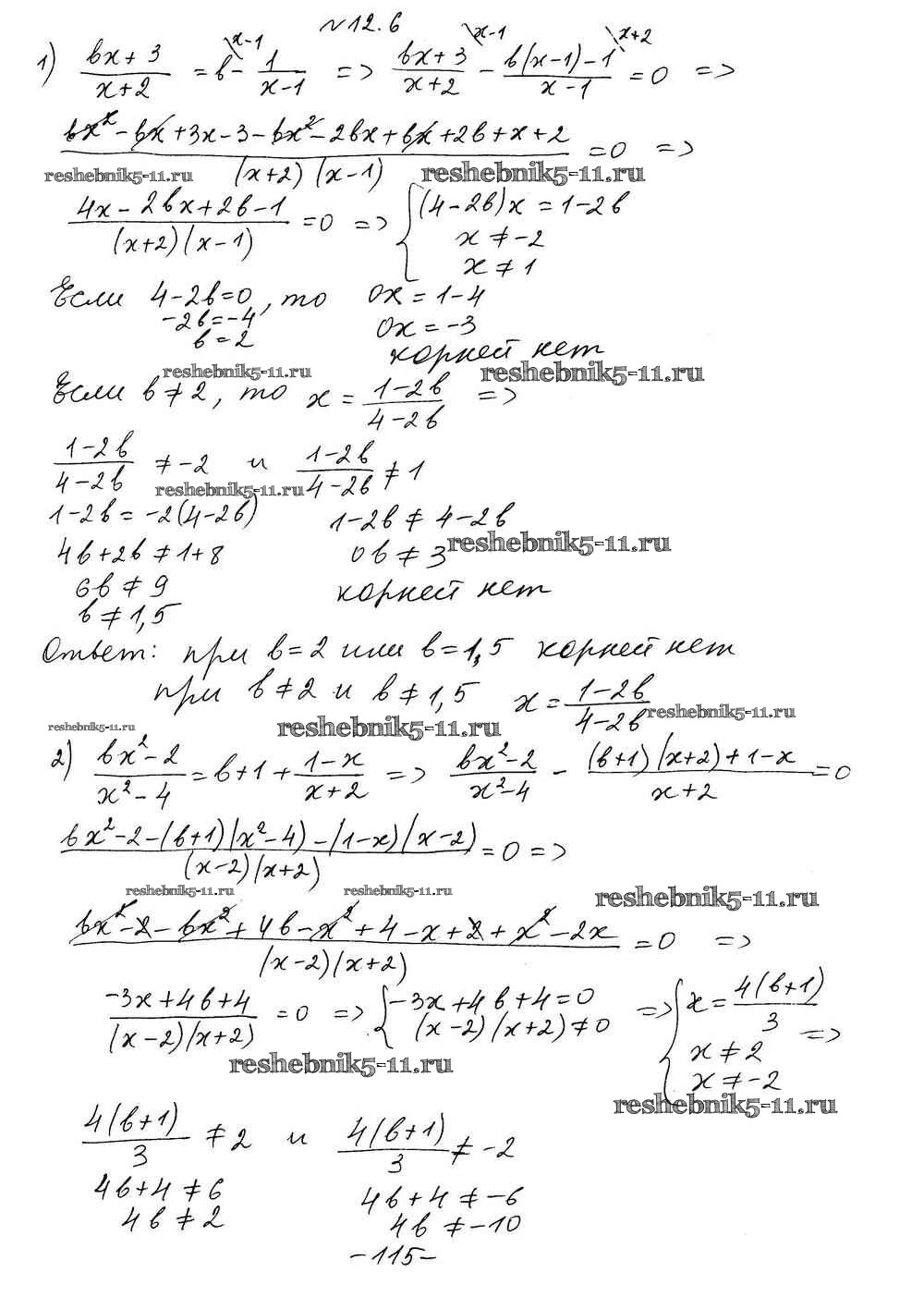 Готовая домашняя работа с ответами по Алгебре за 8 класс Мерзляк, Поляков Учебник Алгоритм успеха Углубленный уровень Вентана-граф 2020 ФГОС - §12. Рациональные уравнения с параметрами 6