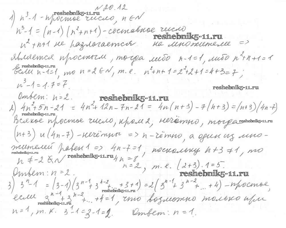 Готовая домашняя работа с ответами по Алгебре за 8 класс Мерзляк, Поляков Учебник Алгоритм успеха Углубленный уровень Вентана-граф 2020 ФГОС - §20. Простые и составные числа 12