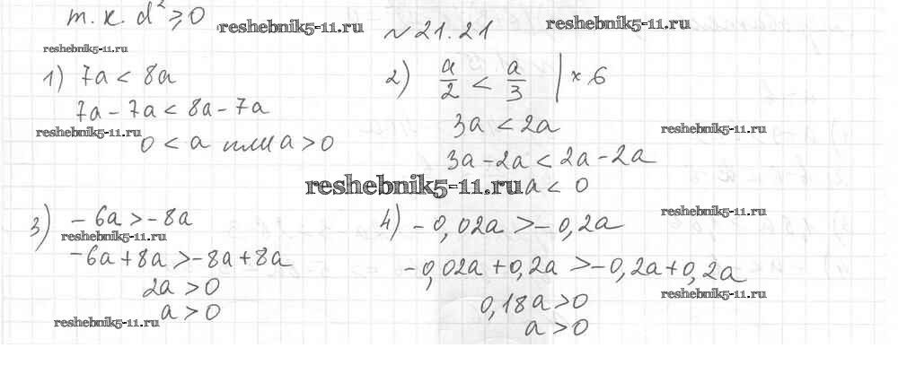 Готовая домашняя работа с ответами по Алгебре за 8 класс Мерзляк, Поляков Учебник Алгоритм успеха Углубленный уровень Вентана-граф 2020 ФГОС - §21. Числовые неравенства и их свойства 21