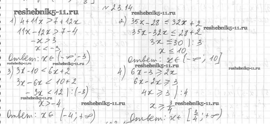 Готовая домашняя работа с ответами по Алгебре за 8 класс Мерзляк, Поляков Учебник Алгоритм успеха Углубленный уровень Вентана-граф 2020 ФГОС - §23. Неравенства с одной переменной 14
