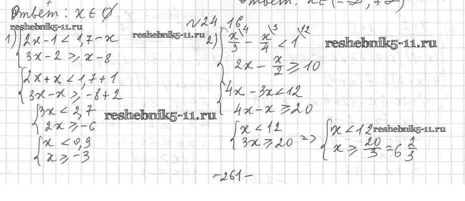 Готовая домашняя работа с ответами по Алгебре за 8 класс Мерзляк, Поляков Учебник Алгоритм успеха Углубленный уровень Вентана-граф 2020 ФГОС - §24. Системы и совокупности линейных неравенств с одной переменной 16