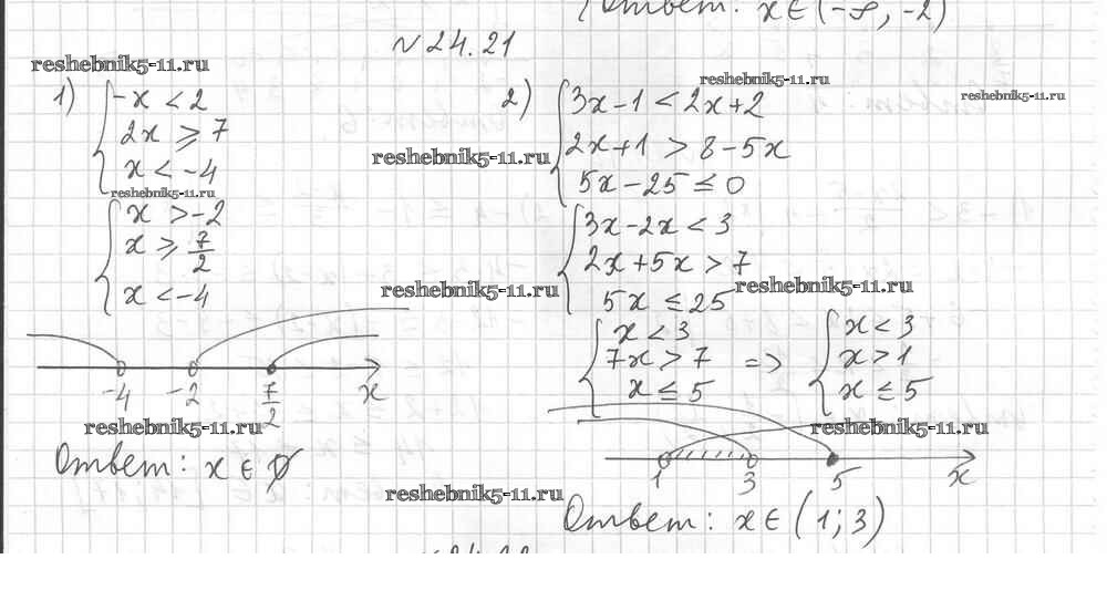 Готовая домашняя работа с ответами по Алгебре за 8 класс Мерзляк, Поляков Учебник Алгоритм успеха Углубленный уровень Вентана-граф 2020 ФГОС - §24. Системы и совокупности линейных неравенств с одной переменной 21