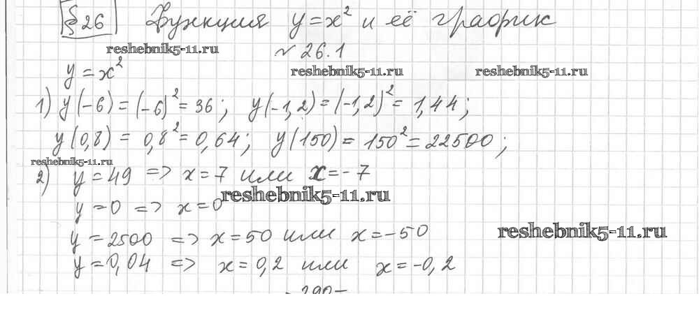 Готовая домашняя работа с ответами по Алгебре за 8 класс Мерзляк, Поляков Учебник Алгоритм успеха Углубленный уровень Вентана-граф 2020 ФГОС - §26. Функция y=x² и ее график 1