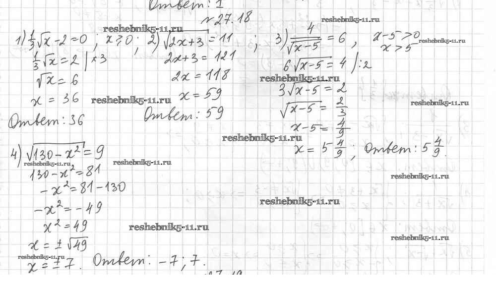 Готовая домашняя работа с ответами по Алгебре за 8 класс Мерзляк, Поляков Учебник Алгоритм успеха Углубленный уровень Вентана-граф 2020 ФГОС - §27. Квадратные корни 18