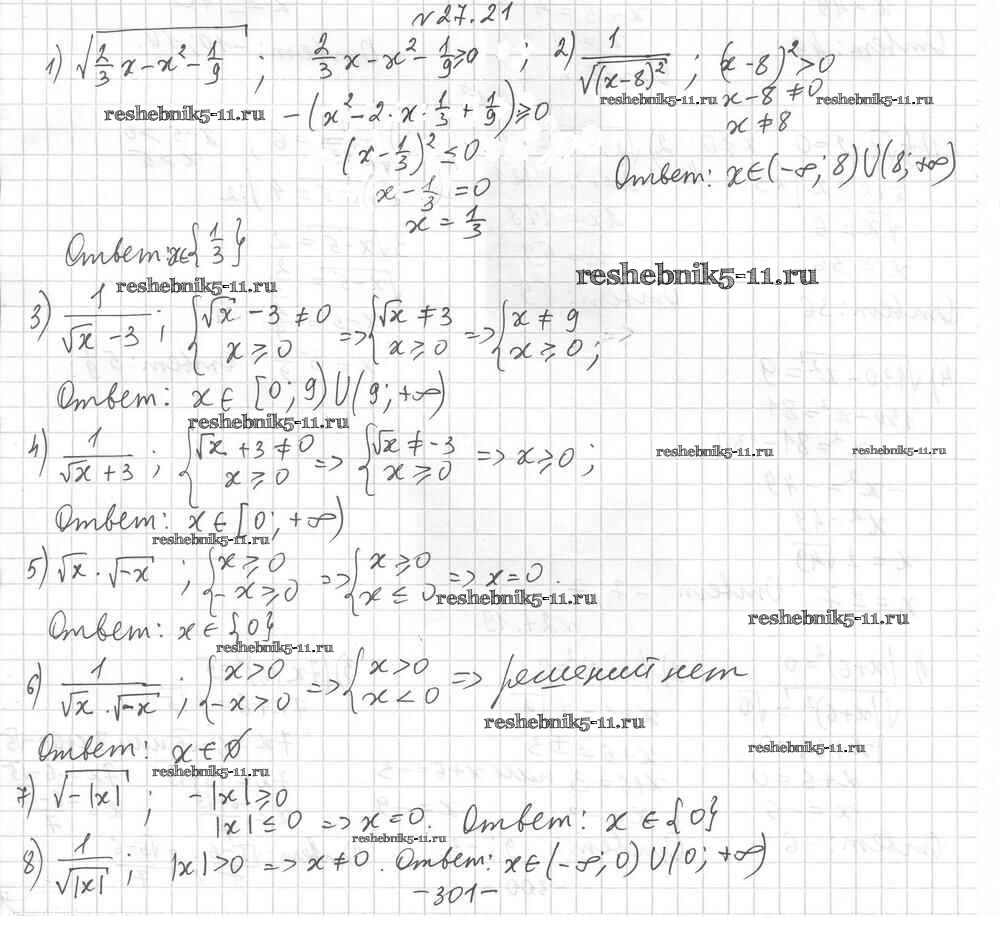 Готовая домашняя работа с ответами по Алгебре за 8 класс Мерзляк, Поляков Учебник Алгоритм успеха Углубленный уровень Вентана-граф 2020 ФГОС - §27. Квадратные корни 21