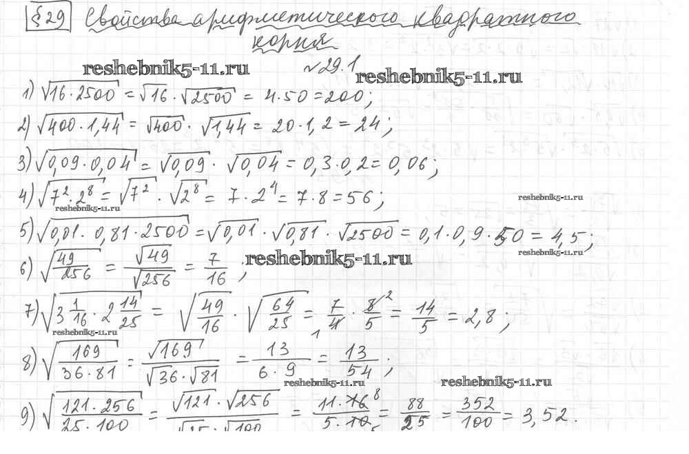 Готовая домашняя работа с ответами по Алгебре за 8 класс Мерзляк, Поляков Учебник Алгоритм успеха Углубленный уровень Вентана-граф 2020 ФГОС - §29. Свойства арифметического квадратного корня 1