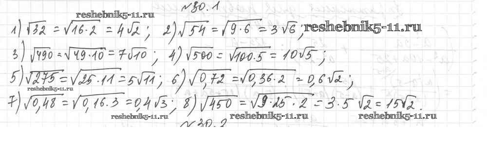 Готовая домашняя работа с ответами по Алгебре за 8 класс Мерзляк, Поляков Учебник Алгоритм успеха Углубленный уровень Вентана-граф 2020 ФГОС - §30. Тождественные преобразования выражений, содержащих арифметические квадратные корни 1
