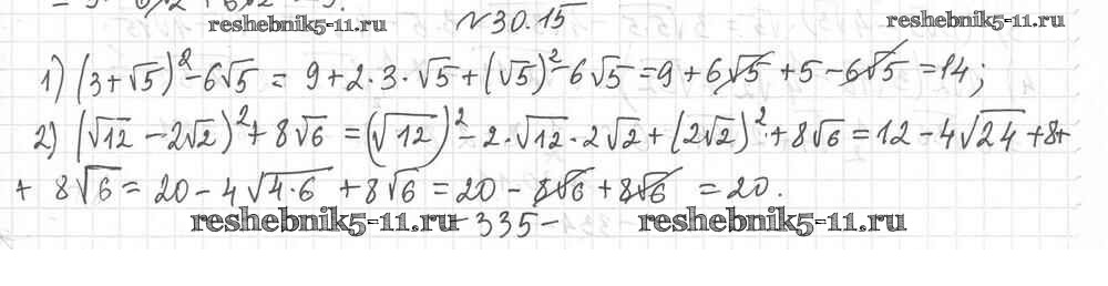 Готовая домашняя работа с ответами по Алгебре за 8 класс Мерзляк, Поляков Учебник Алгоритм успеха Углубленный уровень Вентана-граф 2020 ФГОС - §30. Тождественные преобразования выражений, содержащих арифметические квадратные корни 15