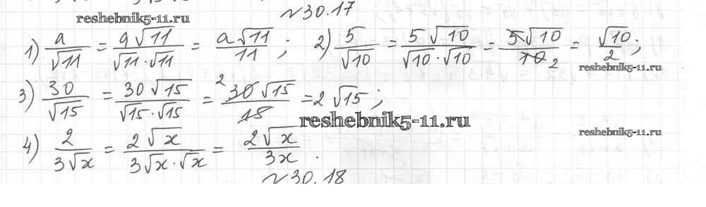 Готовая домашняя работа с ответами по Алгебре за 8 класс Мерзляк, Поляков Учебник Алгоритм успеха Углубленный уровень Вентана-граф 2020 ФГОС - §30. Тождественные преобразования выражений, содержащих арифметические квадратные корни 17