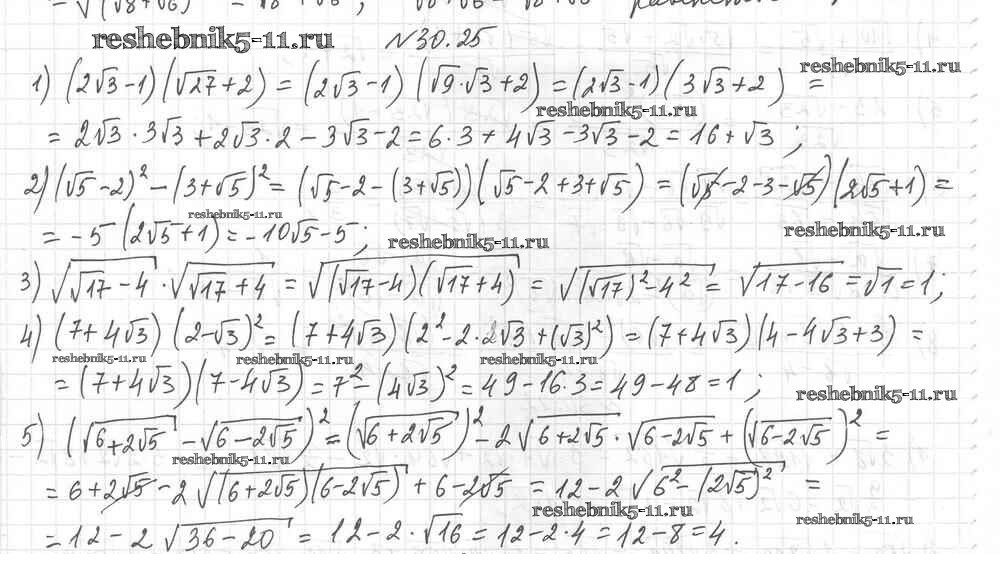Готовая домашняя работа с ответами по Алгебре за 8 класс Мерзляк, Поляков Учебник Алгоритм успеха Углубленный уровень Вентана-граф 2020 ФГОС - §30. Тождественные преобразования выражений, содержащих арифметические квадратные корни 25