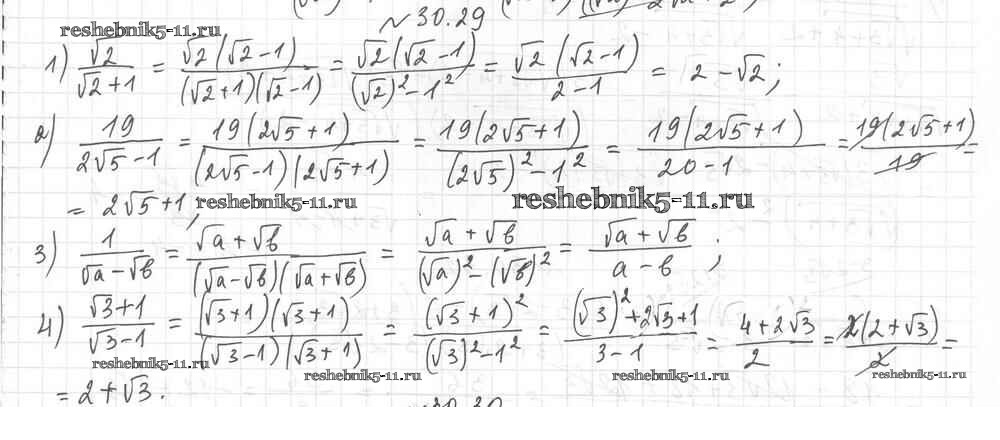 Готовая домашняя работа с ответами по Алгебре за 8 класс Мерзляк, Поляков Учебник Алгоритм успеха Углубленный уровень Вентана-граф 2020 ФГОС - §30. Тождественные преобразования выражений, содержащих арифметические квадратные корни 29