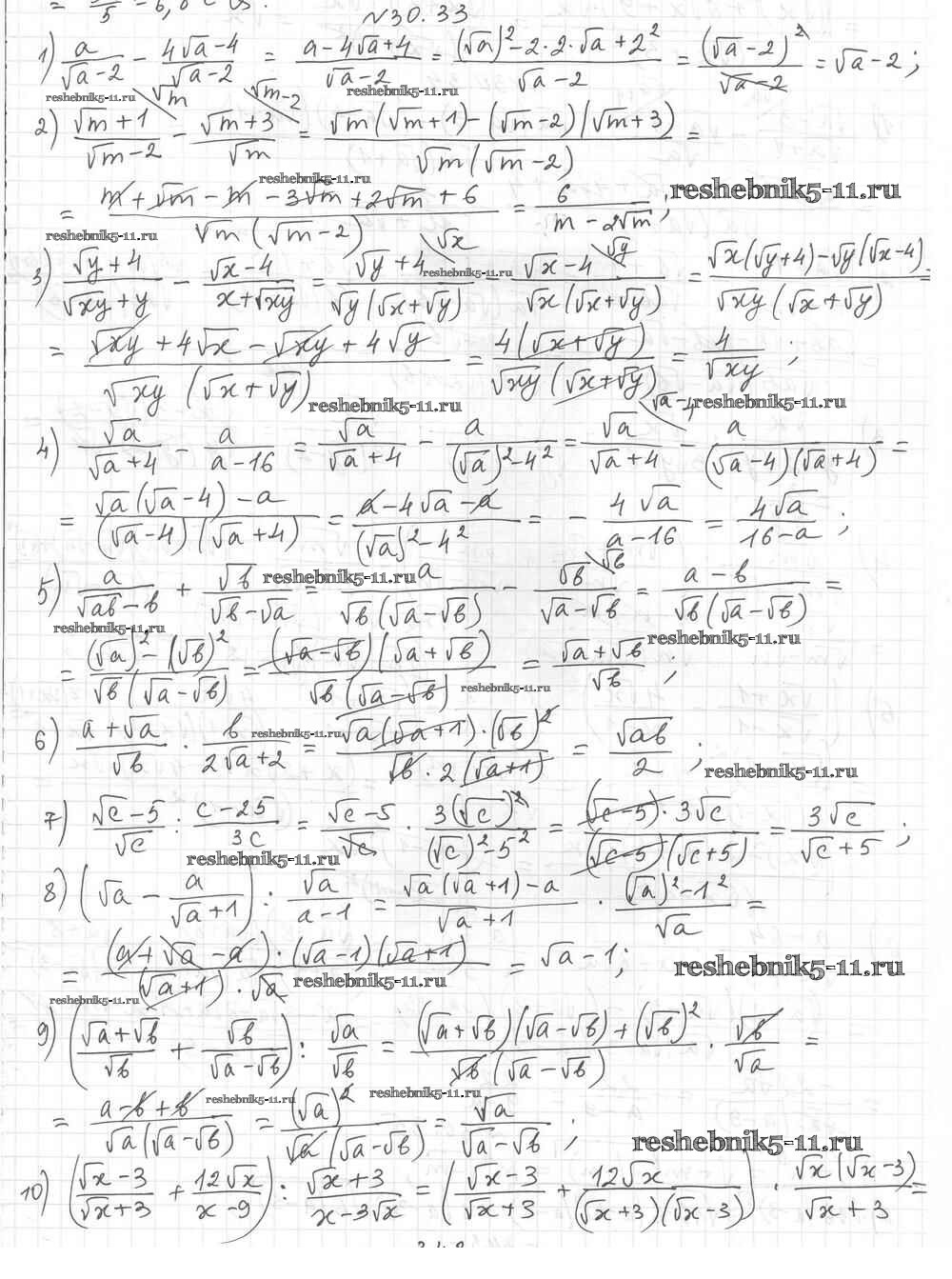 Готовая домашняя работа с ответами по Алгебре за 8 класс Мерзляк, Поляков Учебник Алгоритм успеха Углубленный уровень Вентана-граф 2020 ФГОС - §30. Тождественные преобразования выражений, содержащих арифметические квадратные корни 33