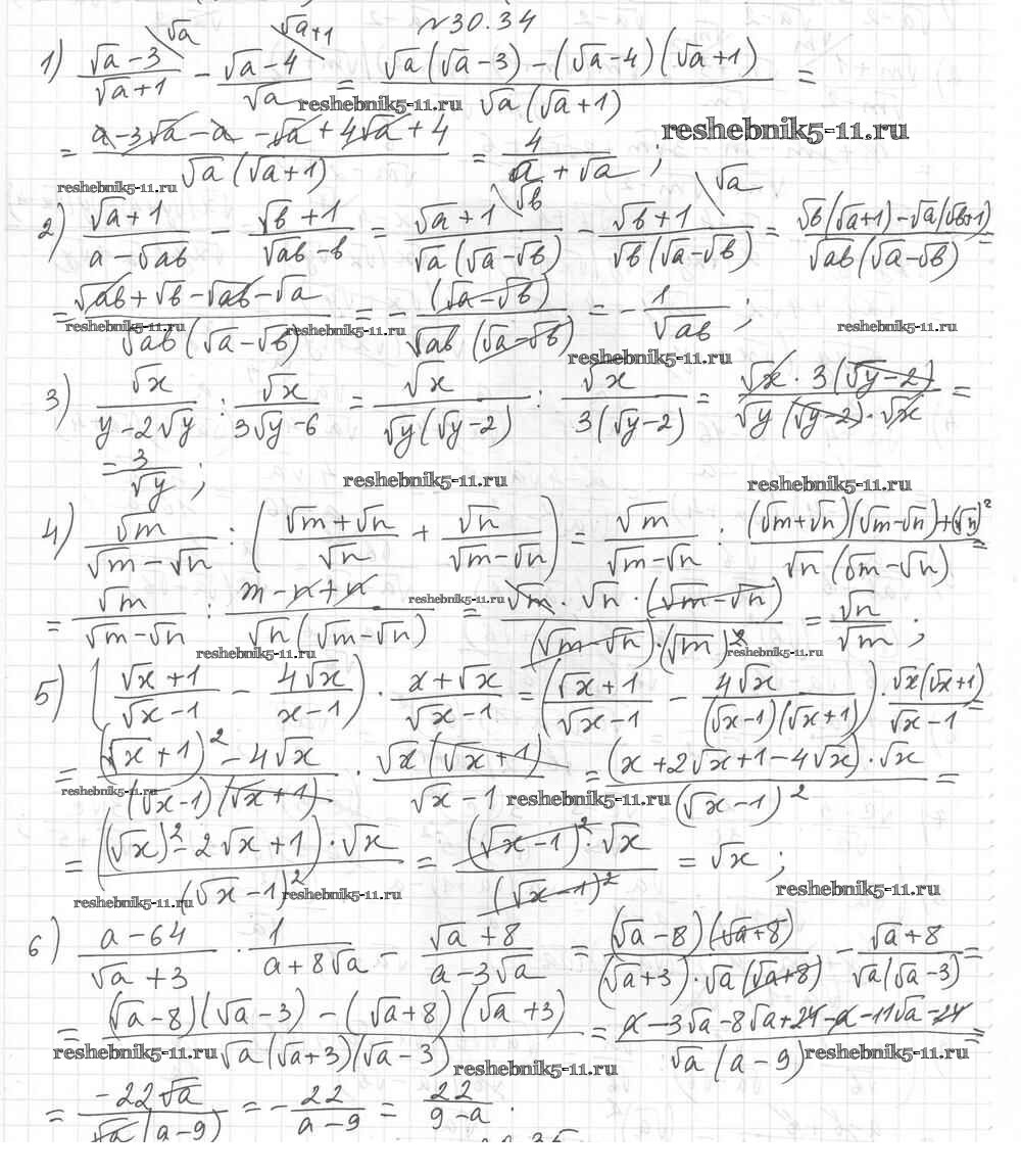 Готовая домашняя работа с ответами по Алгебре за 8 класс Мерзляк, Поляков Учебник Алгоритм успеха Углубленный уровень Вентана-граф 2020 ФГОС - §30. Тождественные преобразования выражений, содержащих арифметические квадратные корни 34