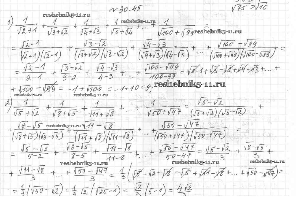 Готовая домашняя работа с ответами по Алгебре за 8 класс Мерзляк, Поляков Учебник Алгоритм успеха Углубленный уровень Вентана-граф 2020 ФГОС - §30. Тождественные преобразования выражений, содержащих арифметические квадратные корни 45