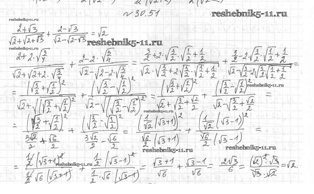 Готовая домашняя работа с ответами по Алгебре за 8 класс Мерзляк, Поляков Учебник Алгоритм успеха Углубленный уровень Вентана-граф 2020 ФГОС - §30. Тождественные преобразования выражений, содержащих арифметические квадратные корни 51
