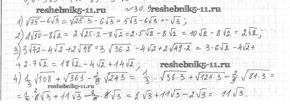 §30. Тождественные преобразования выражений, содержащих арифметические квадратные корни