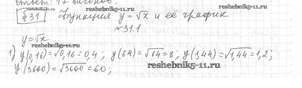 Готовая домашняя работа с ответами по Алгебре за 8 класс Мерзляк, Поляков Учебник Алгоритм успеха Углубленный уровень Вентана-граф 2020 ФГОС - §31. Функция y=√x и ее график 1