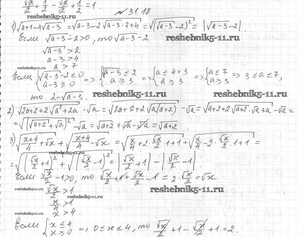 Готовая домашняя работа с ответами по Алгебре за 8 класс Мерзляк, Поляков Учебник Алгоритм успеха Углубленный уровень Вентана-граф 2020 ФГОС - §31. Функция y=√x и ее график 18