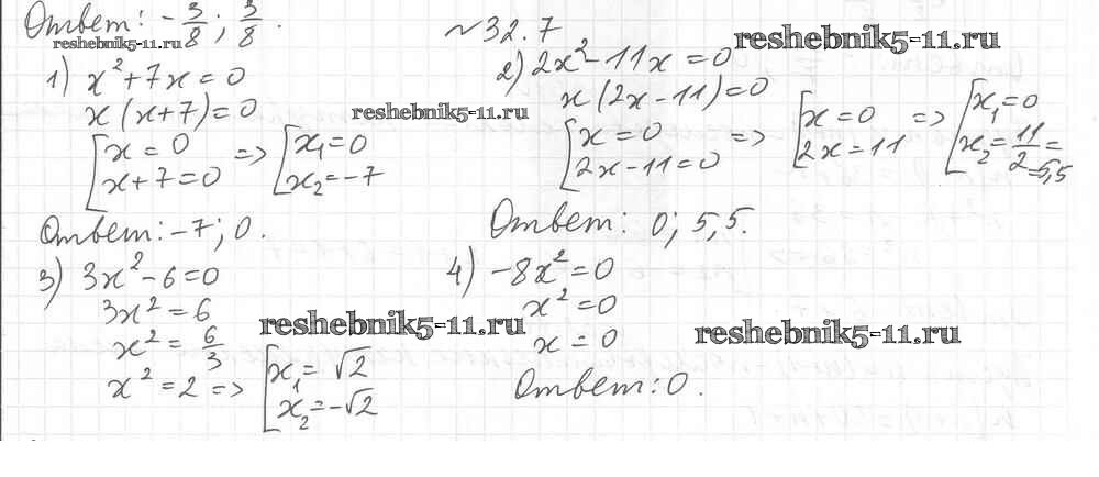 Готовая домашняя работа с ответами по Алгебре за 8 класс Мерзляк, Поляков Учебник Алгоритм успеха Углубленный уровень Вентана-граф 2020 ФГОС - §32. Квадратные уравнения 7