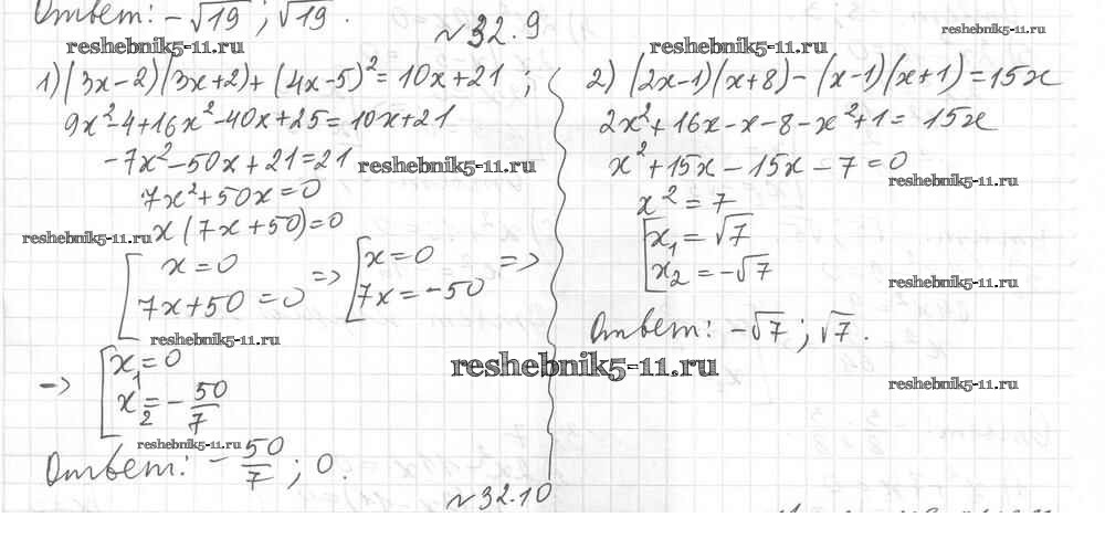 Готовая домашняя работа с ответами по Алгебре за 8 класс Мерзляк, Поляков Учебник Алгоритм успеха Углубленный уровень Вентана-граф 2020 ФГОС - §32. Квадратные уравнения 9