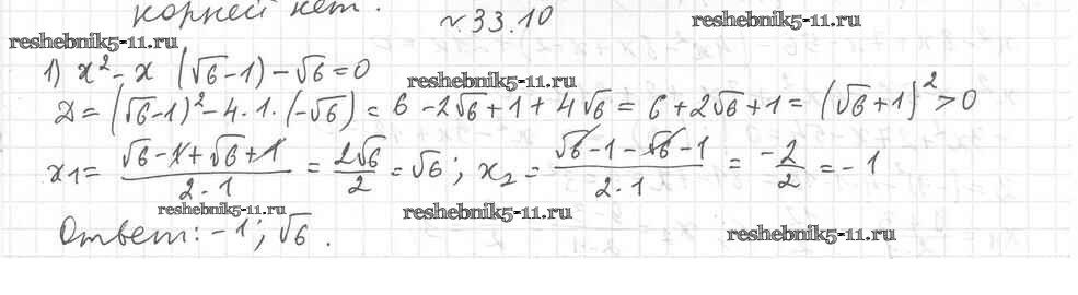 Готовая домашняя работа с ответами по Алгебре за 8 класс Мерзляк, Поляков Учебник Алгоритм успеха Углубленный уровень Вентана-граф 2020 ФГОС - §33. Формула корней квадратного уравнения 10