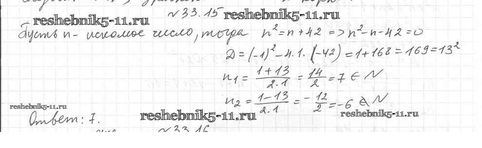 Готовая домашняя работа с ответами по Алгебре за 8 класс Мерзляк, Поляков Учебник Алгоритм успеха Углубленный уровень Вентана-граф 2020 ФГОС - §33. Формула корней квадратного уравнения 15