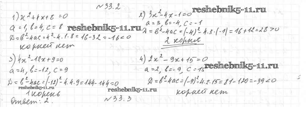 Готовая домашняя работа с ответами по Алгебре за 8 класс Мерзляк, Поляков Учебник Алгоритм успеха Углубленный уровень Вентана-граф 2020 ФГОС - §33. Формула корней квадратного уравнения 2