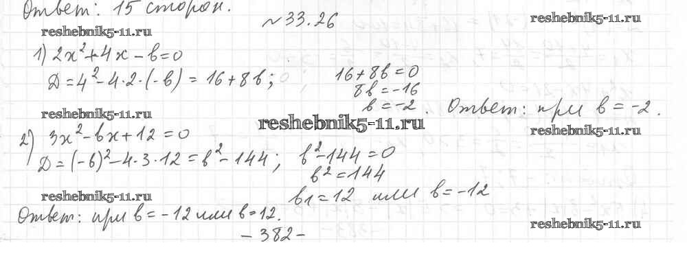 Готовая домашняя работа с ответами по Алгебре за 8 класс Мерзляк, Поляков Учебник Алгоритм успеха Углубленный уровень Вентана-граф 2020 ФГОС - §33. Формула корней квадратного уравнения 26
