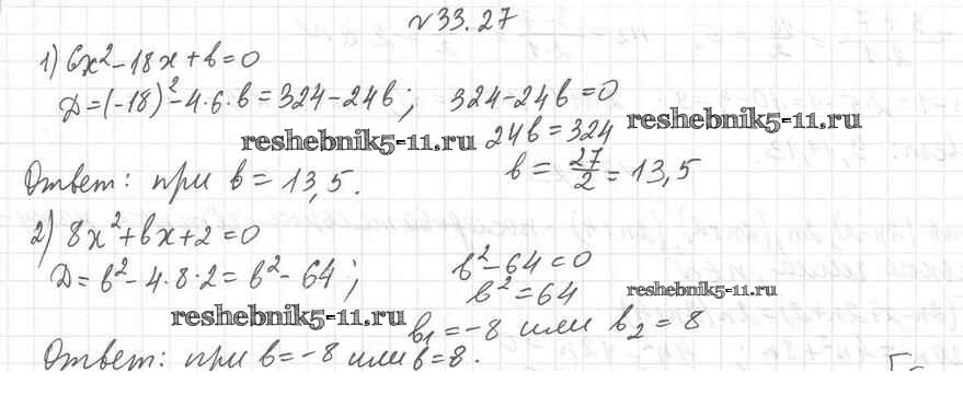 Готовая домашняя работа с ответами по Алгебре за 8 класс Мерзляк, Поляков Учебник Алгоритм успеха Углубленный уровень Вентана-граф 2020 ФГОС - §33. Формула корней квадратного уравнения 27