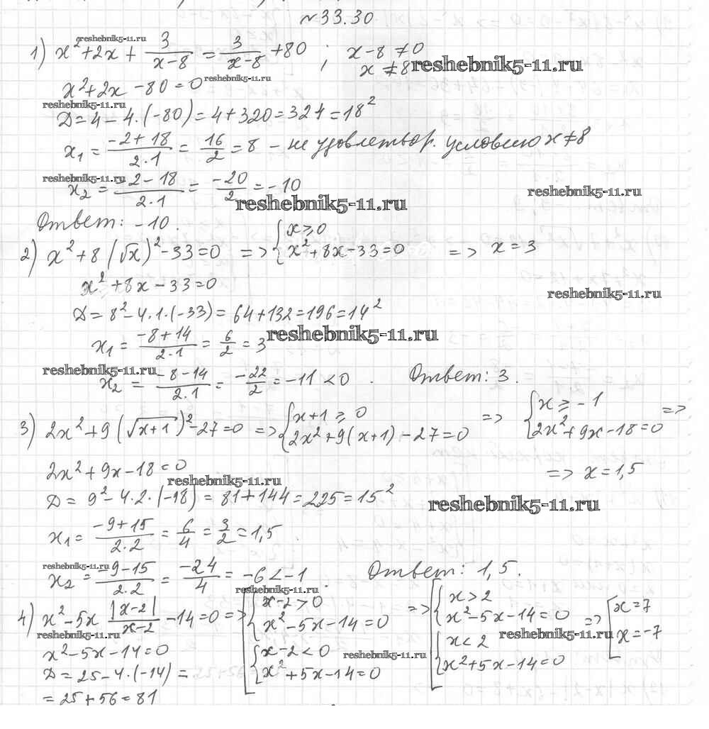 Готовая домашняя работа с ответами по Алгебре за 8 класс Мерзляк, Поляков Учебник Алгоритм успеха Углубленный уровень Вентана-граф 2020 ФГОС - §33. Формула корней квадратного уравнения 30